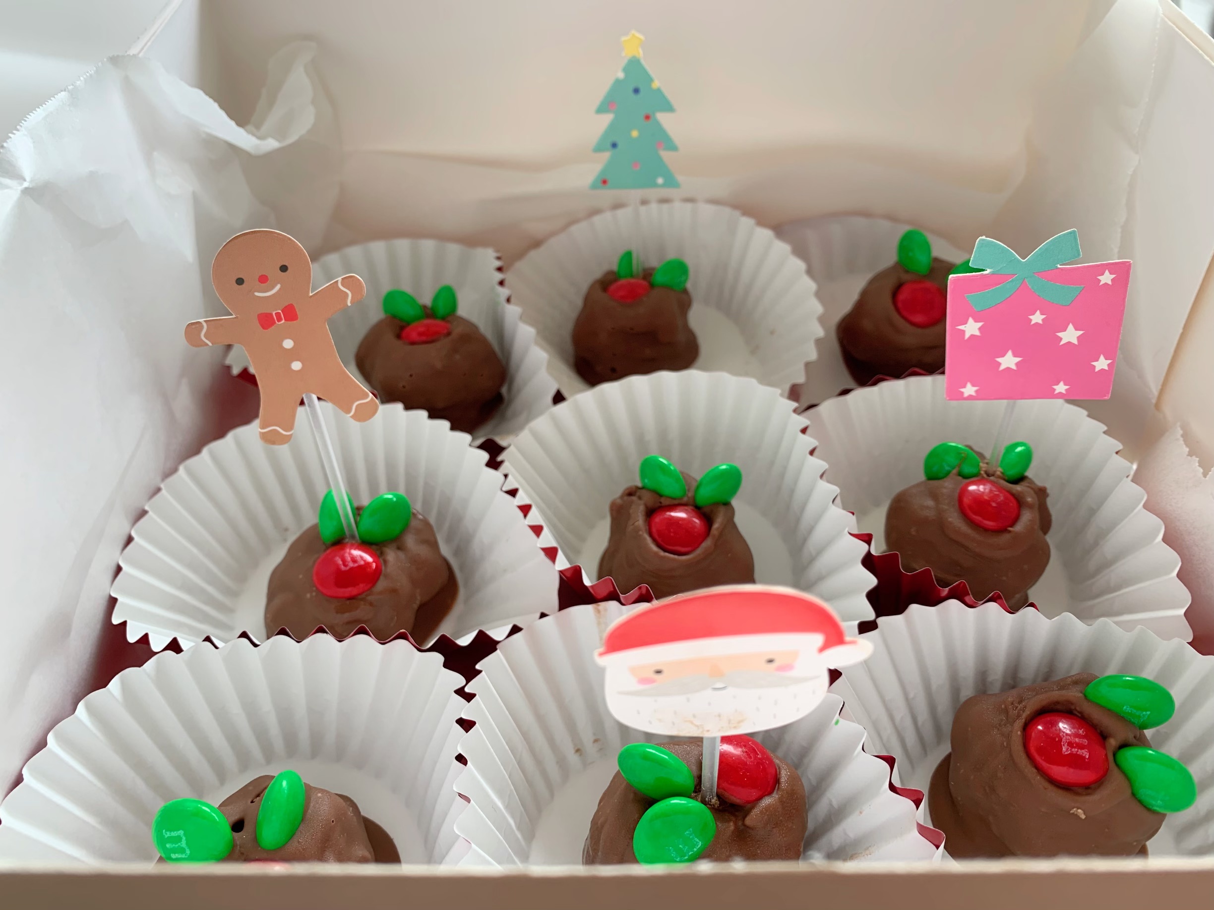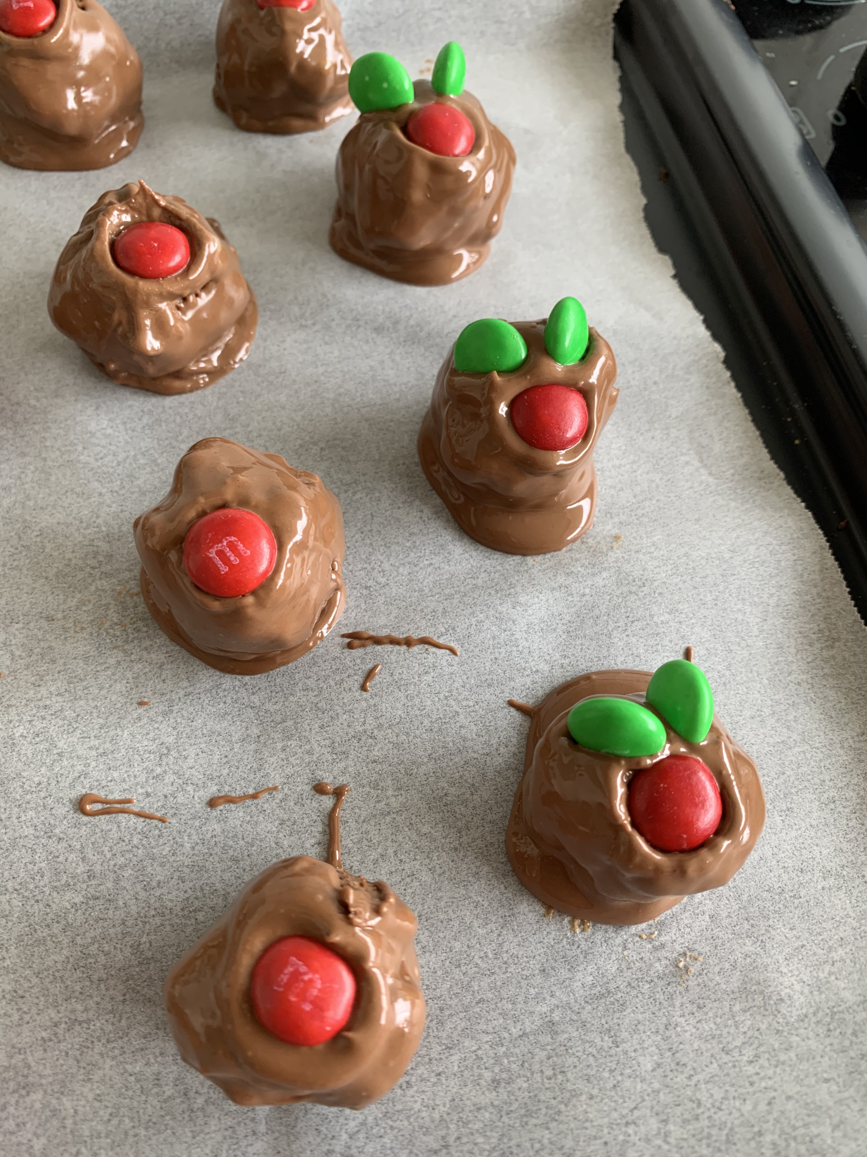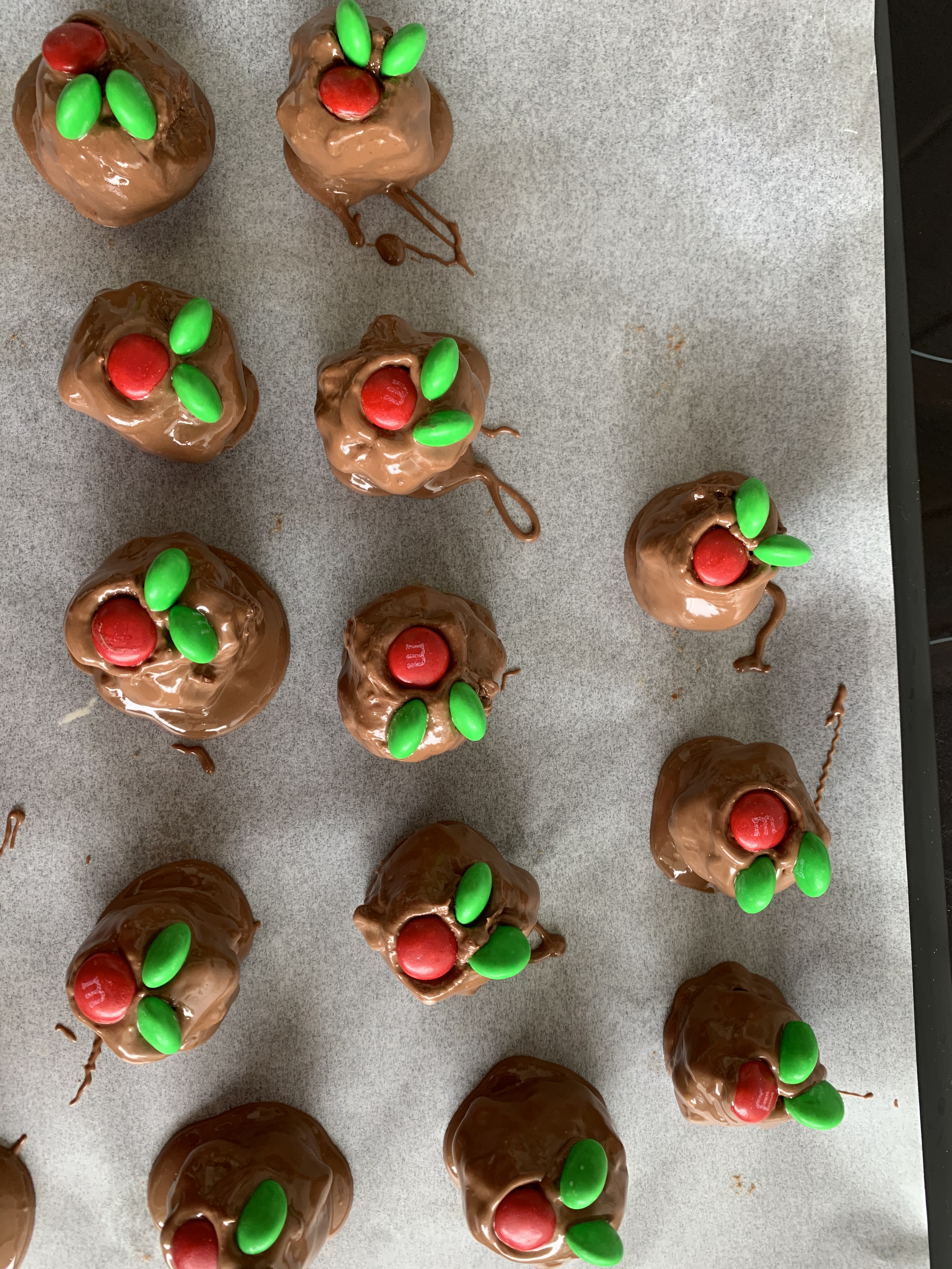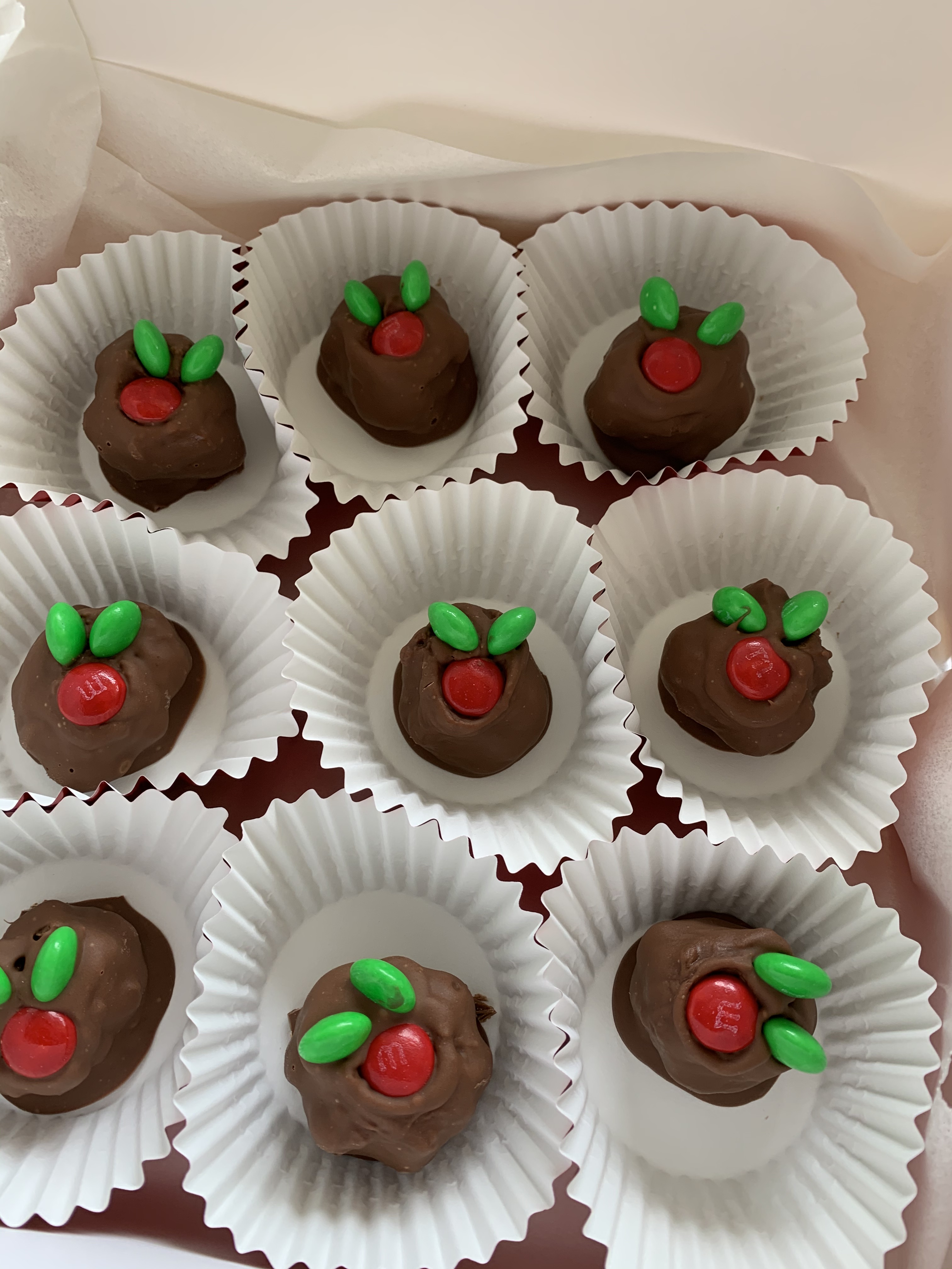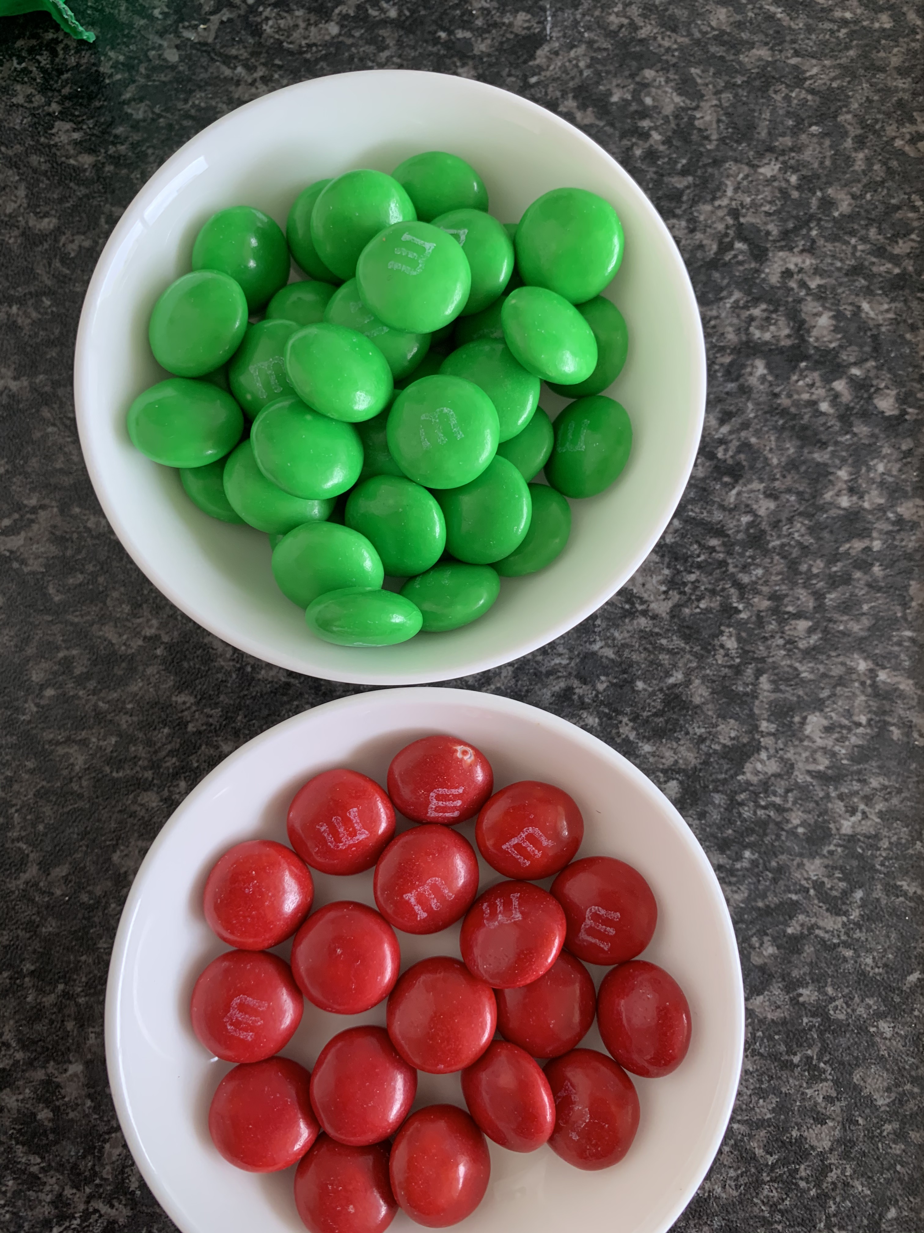 - Red/Green M&M’s or for gluten free I use slivered almonds and cranberries to decorate